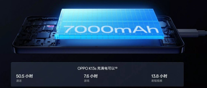此外,OPPO K13s续航也不错,它内置一块7000mAh超大容量电池,即便高强度使用六年,电池健康依然坚挺。充电方面,标配80W超级闪充,不到一小时完全充满。一次充电,轻松满足一天重度使用,轻度用户甚至两三天一充也无压力。