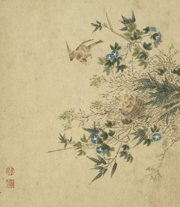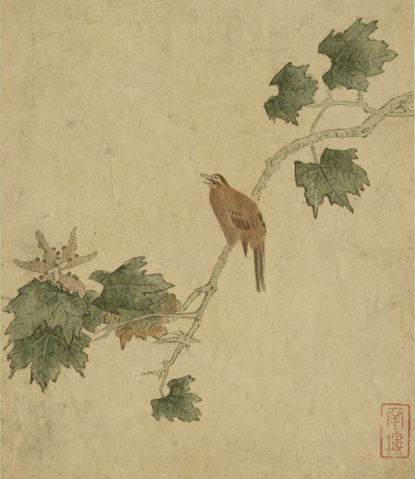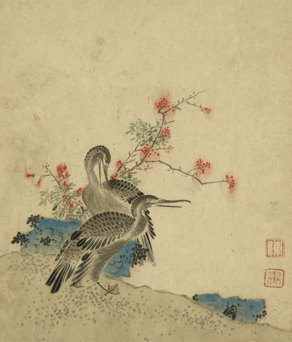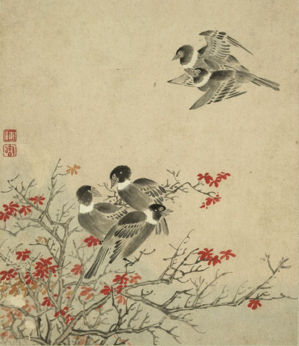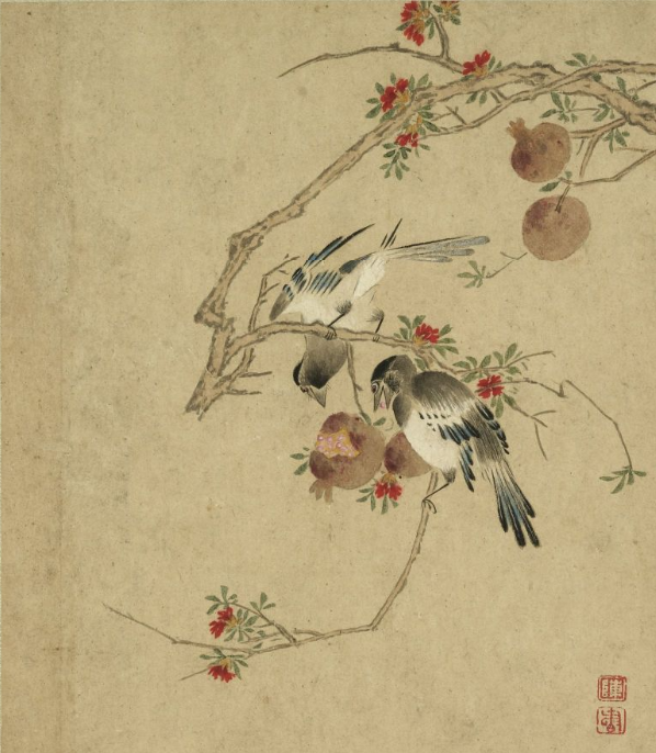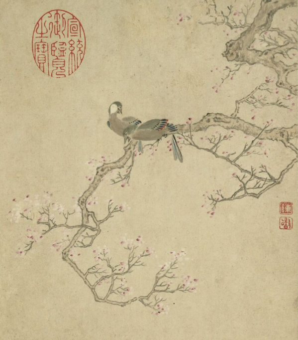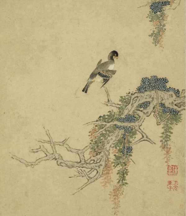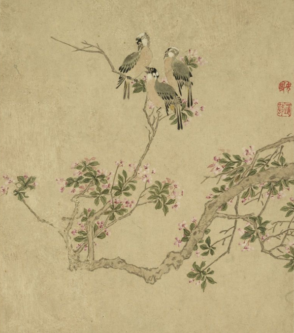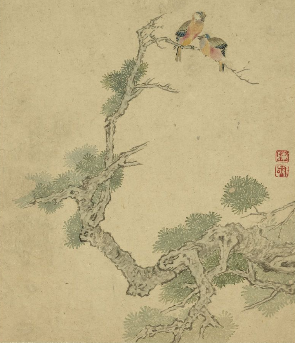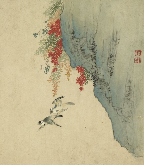 《仿古花卉翎毛图册》是陈书创作的一幅极具艺术价值的纸本册页画。此图册以四时花木与禽鸟为题材,笔墨娴雅,技法高超,构图精巧,布局得当,展现了陈书极高的艺术造诣和描摹自然的能力。通过欣赏此图册,我们可以感受到陈书对自然美的敏锐洞察力和对生活的美好祝愿,也可以领略到清代花鸟画的独特魅力和深远影响。